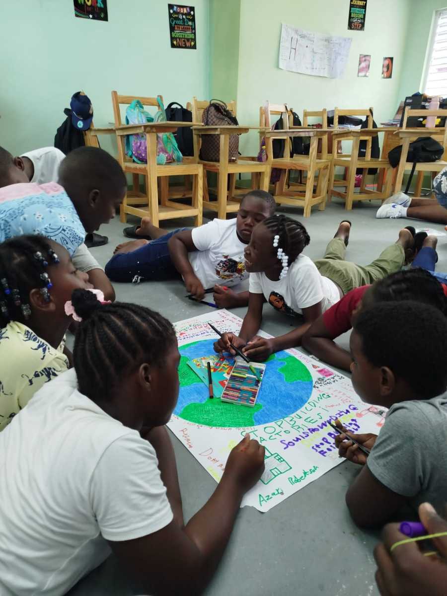 But despite everything, we managed to organize good lessons, complemented with activities, games, and moments of sharing and reflection. To reach the schools where we delivered the lessons, we traveled around the area near Richmond Vale Academy. The primary schools that hosted us were in Fitz Hughes, Chateaubelair, Troumaca, and Rose Hall. The lessons took place during science class and lasted about 45 minutes each. We divided the program into four sessions: