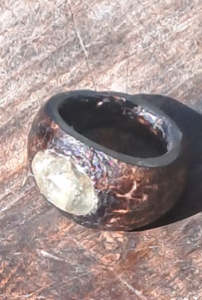 Here is a Garifuna artifact (ring) made from gru gru seed and diamond rock from the volcano.